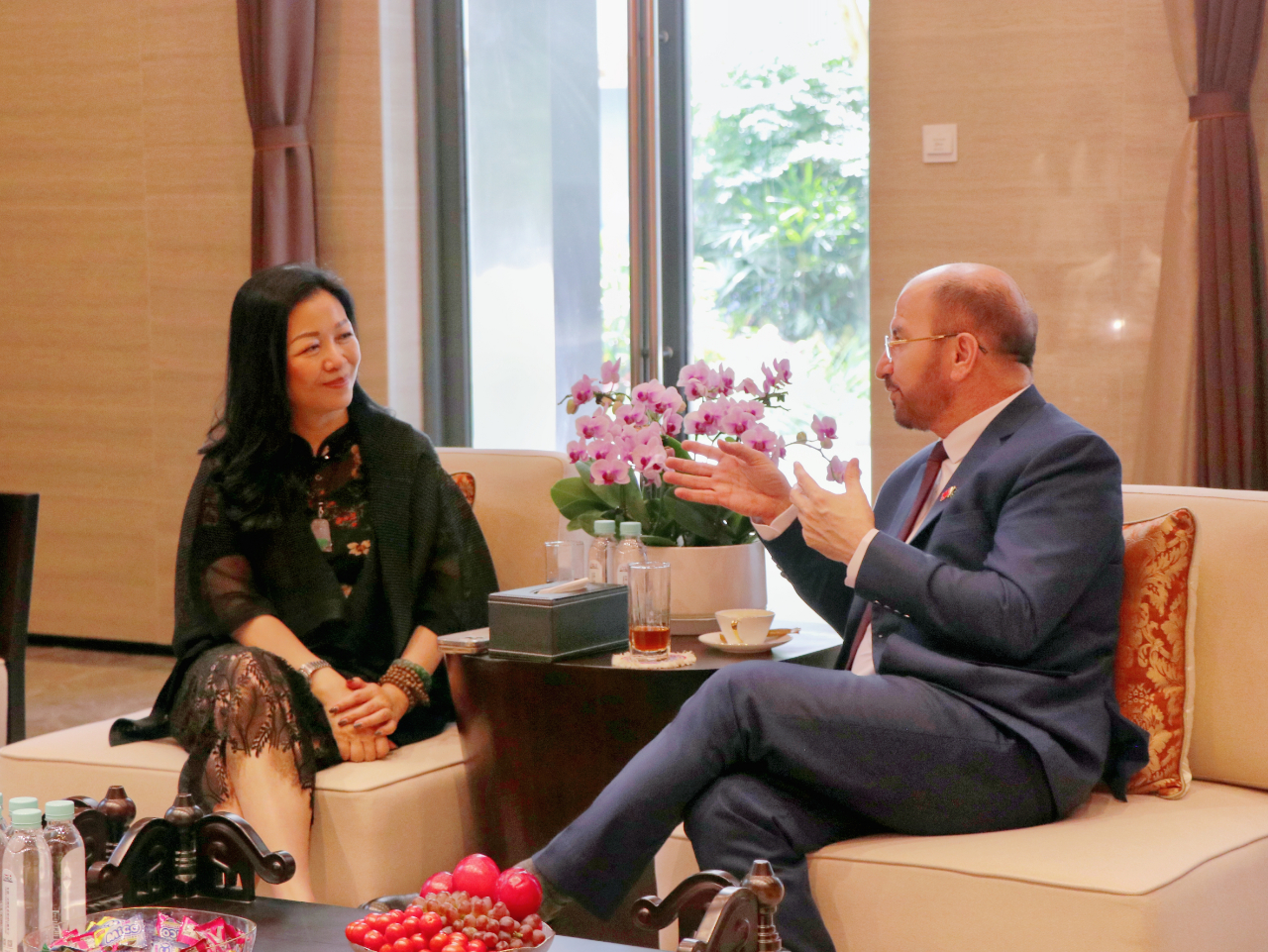 查看詳情5月9日下午,馬來西亞駐南寧總領事館總領事阿哈默·法蒂爾·伊斯邁爾、馬來西亞駐廣州總領事館商務領事哈里斯一行到訪中國—東盟特色商品匯聚中心,實地調研項目的發(fā)展情況。中國—東盟特色商品匯聚中心董事長趙海燕熱情接待領事們一行。