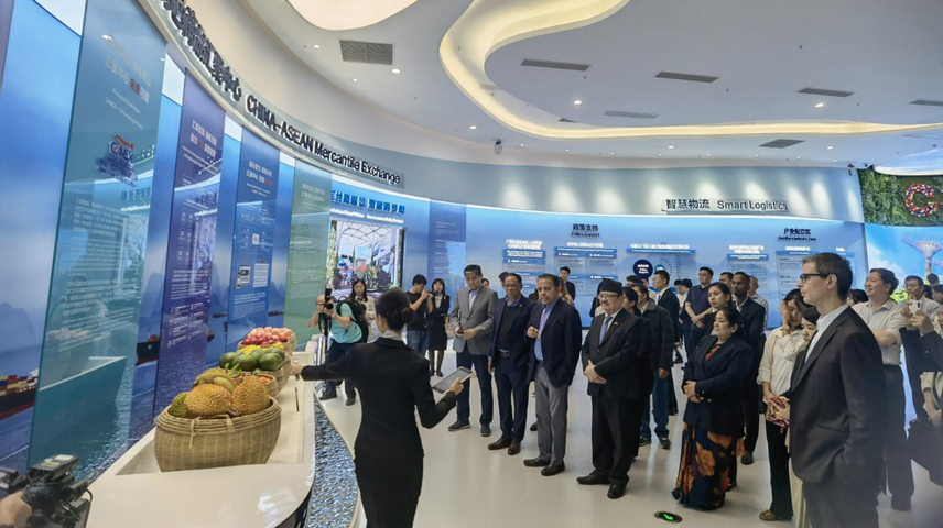 聚焦西部陸海新通道建設(shè),共享發(fā)展新機(jī)遇!4月4日,位于中國(廣西)自由貿(mào)易試驗(yàn)區(qū)的中新南寧國際物流園(以下簡稱中新物流園)迎來了由外交部主辦“駐華使節(jié)廣西行”的外國駐華使節(jié)團(tuán),來自東盟、南亞、中亞、拉美17個(gè)國家30多名外交官員在外交部外管司司長陳立一行的陪同下實(shí)地參訪中新物流園,中國—東盟特色商品匯聚中心副總經(jīng)理盧春梅等熱情接待。