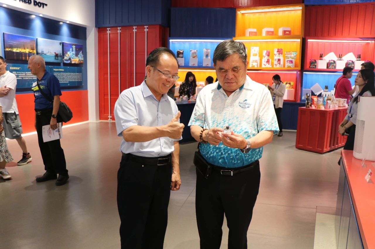 參訪團(tuán)一行在參觀匯聚中心線下主題展館過程中,對館內(nèi)琳瑯滿目的特色商品表現(xiàn)出濃厚的興趣,認(rèn)為匯聚中心創(chuàng)新理念非常出色,能夠通過線上下單快速配送一站式購買各式東盟、RCEP其他區(qū)域國家乃至“一帶一路”沿線重要國家的特色商品,比如新加坡的肉骨茶、印尼的咖啡、日本的清酒、澳大利亞的紅酒等,對商家及消費者來說將是一種全新的沉浸式商貿(mào)體驗。