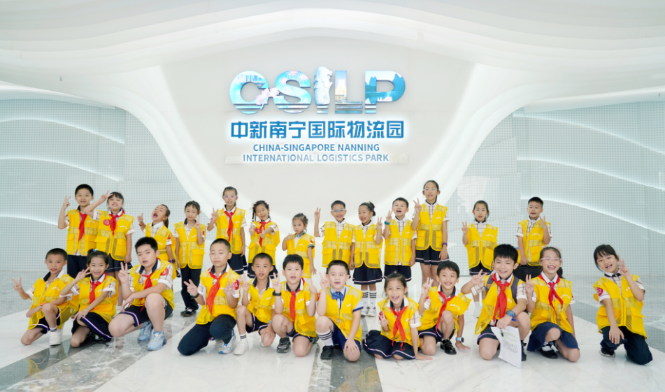 東盟“小記者”們在中新南寧國際物流園合影