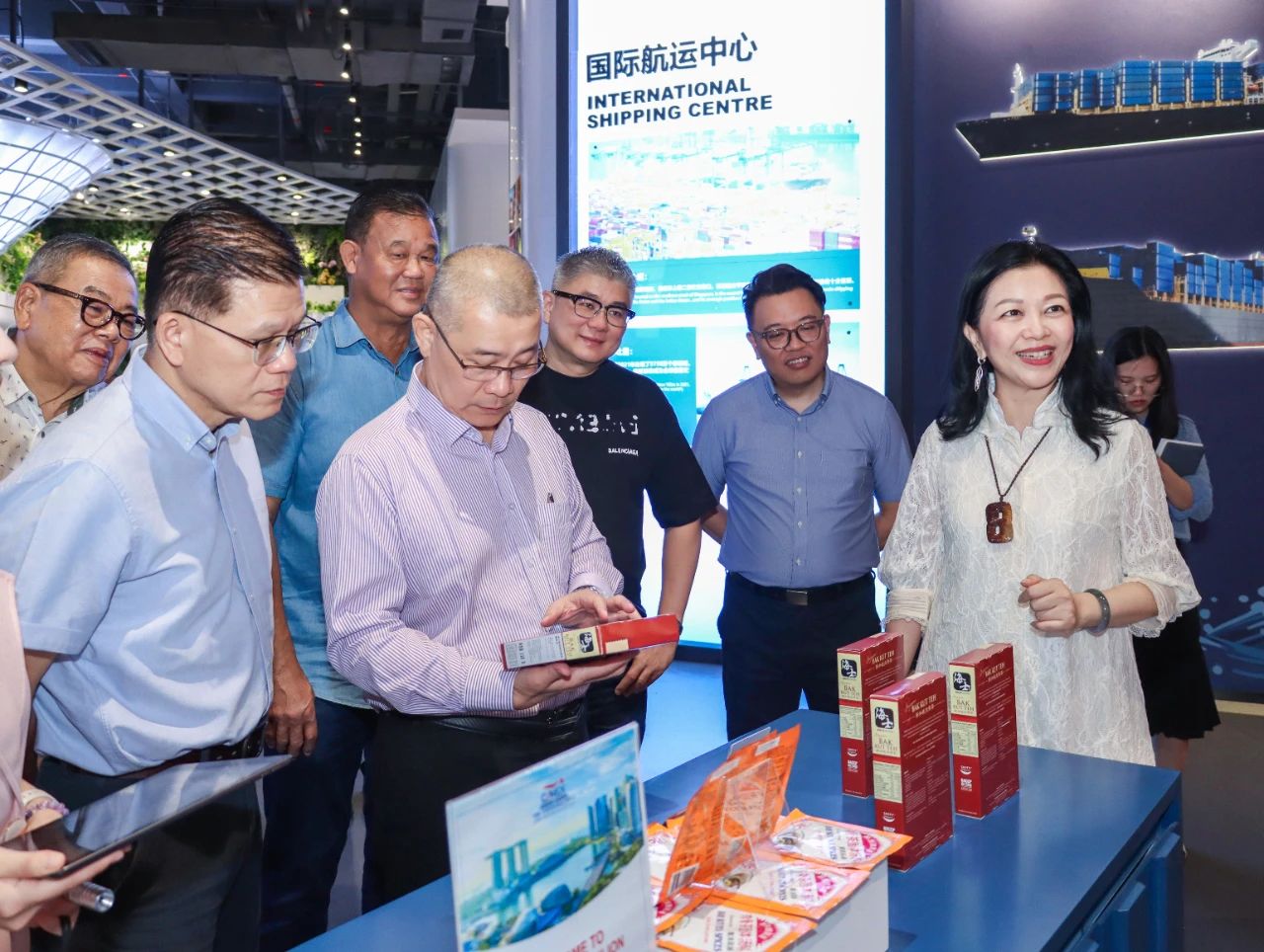 走進(jìn)馬來西亞館,館內(nèi)豐富多彩的商品及當(dāng)?shù)馗鞣N特色文化元素的創(chuàng)意呈現(xiàn),讓考察團(tuán)產(chǎn)生了濃厚的興趣。在了解到匯聚中心為入駐商家提供了免費(fèi)的線上線下展示空間,特別是聽取了各館長對商品專業(yè)的介紹后,考察團(tuán)對平臺的發(fā)展更加有信心。“這是一個(gè)真正為商家服務(wù)并獨(dú)具特色的商貿(mào)平臺,不但滿足C端消費(fèi)者的需求,同時(shí)也為B端客戶尋找商家提供了一個(gè)非常好的窗口,相信我們的商品入駐之后,在匯聚中心專業(yè)化的服務(wù)下,定能開拓更廣闊的市場,”考察團(tuán)欣然表示。其中幾位在馬來西亞當(dāng)?shù)赜兄放频纳碳耶?dāng)即就商品入駐流程及具體事宜與匯聚中心團(tuán)隊(duì)展開了詳細(xì)對接。