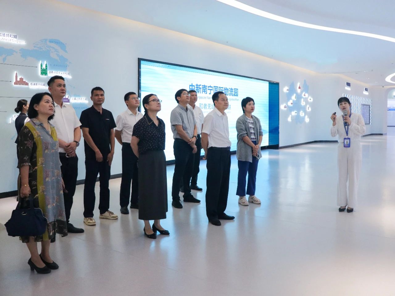 在中新物流園展示中心,調研組深入了解項目的整體建設和運營情況。目前,園區(qū)已引進超30家世界500強和中國100強龍頭企業(yè)進行合作后,調研組認為:中新物流園短時間內便發(fā)展成如此規(guī)模,實屬難得,充分體現了園區(qū)在高水平共建國際陸海貿易新通道及“一帶一路”建設中起到的作用。