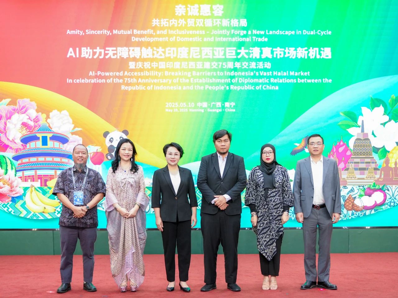邕江潮涌,梭羅風至——五月商機正當時,2025年5月10日,“親誠惠容·共拓內(nèi)外貿(mào)雙循環(huán)新格局——AI助力無障礙觸達印度尼西亞巨大清真市場新機遇暨慶祝中國印度尼西亞建交75周年交流活動”在中國—東盟特色商品匯聚中心(簡稱“匯聚中心”)隆重舉行。此次活動由廣西壯族自治區(qū)商務(wù)廳、中國—東盟特色商品匯聚中心主辦,印度尼西亞共和國駐廣州總領(lǐng)事館、中國—東盟博覽會秘書處、廣西壯族自治區(qū)歸國華僑聯(lián)合會協(xié)辦。