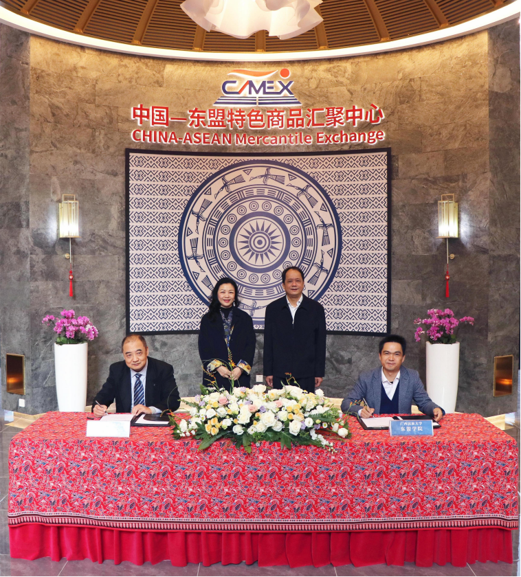 校企合作譜新篇,協(xié)同育人共發(fā)展。12月5日,中國—東盟特色商品匯聚中心(以下簡稱“匯聚中心”)與廣西民族大學(xué)東盟學(xué)院舉行了戰(zhàn)略簽約儀式。廣西民族大學(xué)黨委常委、總會(huì)計(jì)師蔡高根,廣西新中產(chǎn)業(yè)投資有限公司、中國—東盟特色商品匯聚中心董事長趙海燕出席儀式并見證簽約。