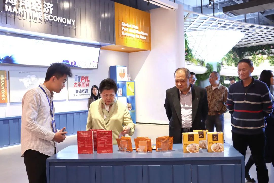 位于園區(qū)內(nèi)的中國—東盟特色商品匯聚中心,是中新南寧國際物流園與中國—東盟博覽會秘書處聯(lián)合重點打造的項目,致力于搭建中國與東盟、RCEP其他區(qū)域國家乃至“一帶一路”沿線重要國家經(jīng)貿(mào)往來線上線下一站式首選平臺。在參觀匯聚中心的過程中,考察團聽取了展館的設(shè)計理念,對館內(nèi)琳瑯滿目的特色商品表現(xiàn)出濃厚的興趣。認為匯聚中心線下展館不僅設(shè)計別出心裁,而且能夠通過線上平臺一站式購買各式東盟乃至RCEP其他區(qū)域國家的特色商品,比如新加坡的肉骨茶、泰國的醬料、澳大利亞的紅酒等,對商家及消費者來說將是一種全新的沉浸式商貿(mào)體驗,同時匯聚中心提供的商品免費展示空間,能夠降低入駐商家的運營成本,為企業(yè)提供了良好的服務平臺。