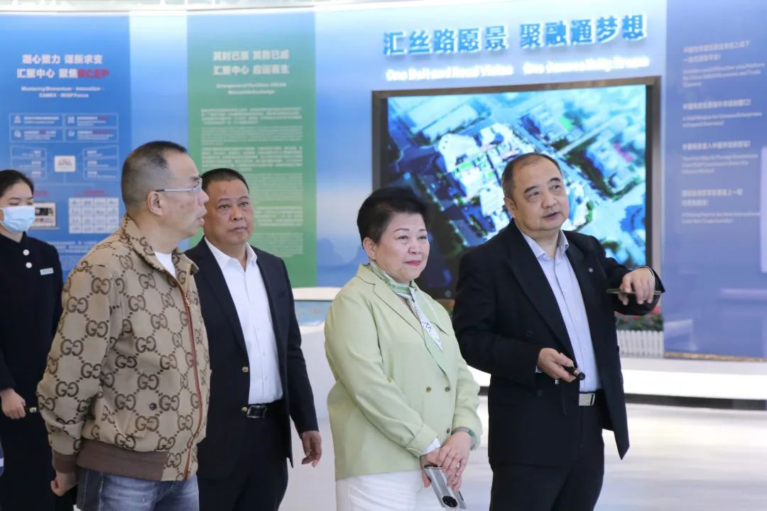 廣西壯族自治區(qū)黨委統(tǒng)戰(zhàn)部一級調(diào)研員、廣西僑商會常務副會長楊真標,廣西僑商會常務副會長、輪值會長、廣西桂林萬靈置業(yè)投資有限公司執(zhí)行董事黃江玲,廣西僑商會常務副會長、廣西粵玖實業(yè)有限公司董事長鄺升,廣西僑商會監(jiān)事長、廣西方凱酒店管理有限責任公司董事長黃少紅,廣西僑商會秘書長蔣文釗,怡海集團辦公室主任薛淑良,怡海集團投資部經(jīng)理崔宇赟,中國—東盟特色商品匯聚中心副總經(jīng)理盧春梅等陪同考察。