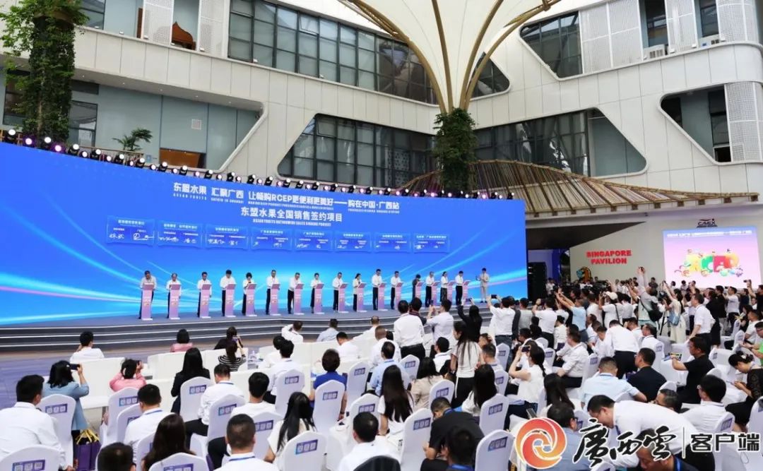 陳剛表示,廣西是中國面向東盟開放合作的前沿和窗口,也是全國水果產(chǎn)量第一的省區(qū)和東盟水果進(jìn)入中國的“門戶樞紐”,號(hào)稱全國的“果盤子”。舉辦此次活動(dòng),是落實(shí)習(xí)近平主席今年4月對(duì)有關(guān)東盟國家進(jìn)行國事訪問成果,發(fā)揮廣西作為東盟水果及RCEP優(yōu)品進(jìn)入中國市場(chǎng)的首站及樞紐作用,推動(dòng)實(shí)現(xiàn)“東盟出產(chǎn)—廣西集散—中國暢銷”,助力深化拓展文旅推介、跨境電商等領(lǐng)域合作,加快區(qū)域經(jīng)濟(jì)一體化,服務(wù)構(gòu)建更為緊密的中國—東盟命運(yùn)共同體。廣西期盼與各方攜手,深化與東盟各國的水果經(jīng)貿(mào)合作,推進(jìn)基礎(chǔ)設(shè)施互聯(lián)互通,打造高效便利的進(jìn)出口通關(guān)服務(wù)體系,共同開拓中國—東盟水果貿(mào)易市場(chǎng)空間;深化人工智能、數(shù)字經(jīng)濟(jì)領(lǐng)域交流合作,推動(dòng)人工智能在水果品種研發(fā)、種植等環(huán)節(jié)的運(yùn)用,打造更多人工智能垂直應(yīng)用場(chǎng)景,共同構(gòu)建面向東盟的人工智能國際合作高地;持續(xù)擴(kuò)大對(duì)內(nèi)對(duì)外開放,統(tǒng)籌推進(jìn)沿邊臨港產(chǎn)業(yè)園區(qū)、欽防產(chǎn)業(yè)協(xié)作園區(qū)和中國—東盟產(chǎn)業(yè)合作區(qū)建設(shè),進(jìn)一步深化拓展各領(lǐng)域務(wù)實(shí)合作,共同打造安全穩(wěn)定的跨境產(chǎn)業(yè)鏈供應(yīng)鏈。讓我們攜手并肩,以本次活動(dòng)為契機(jī),把握時(shí)代機(jī)遇,將今日枝頭的鮮甜,釀成明日共贏的瓊漿,讓“水果自由”的幸福感拉滿千家萬戶,共同書寫RCEP合作新篇章。