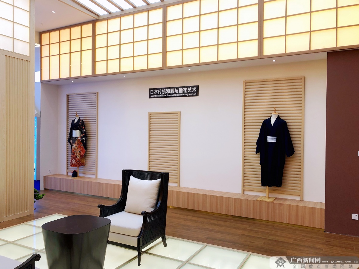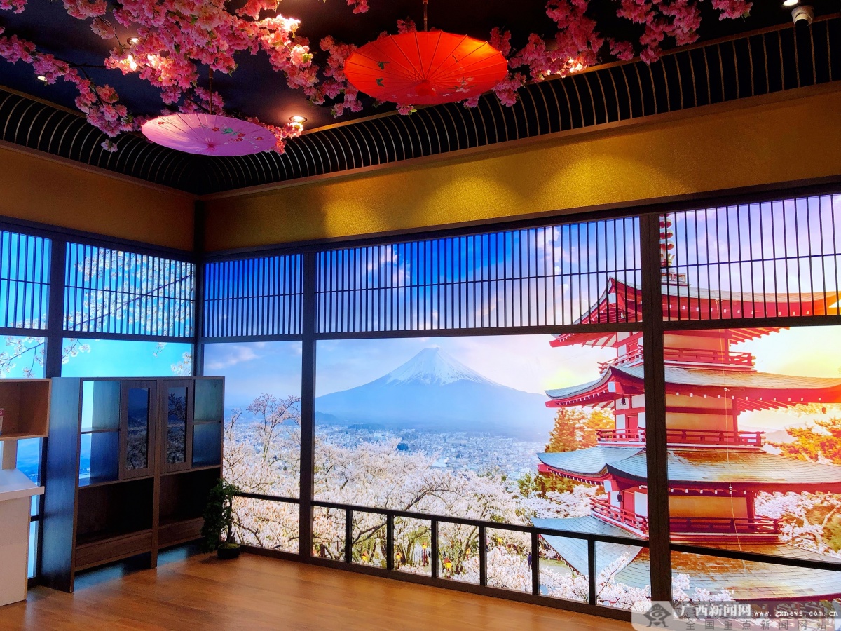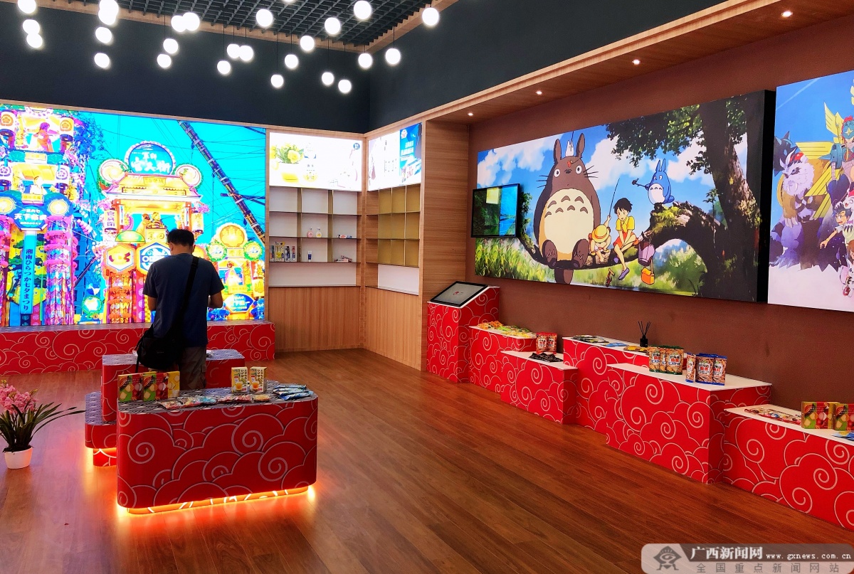 “我們現(xiàn)在看到的是‘春之色’部分,以最具有日本代表性的富士山與櫻花元素為春季設(shè)計(jì)核心,造型意向來自日本京都琉璃光院,讓人仿佛置身于一個(gè)與富士山隔空眺望的禪院。接下來,這里是‘夏之聲’部分,里面包含了許多日本動(dòng)漫元素,其中不乏我們熟知的宮崎駿、手冢治蟲等大師的作品展示,‘秋之韻’部分融合了日本秋天的楓葉美景;‘冬之盼’部分主要體現(xiàn)的是日本高科技技術(shù)”中國—東盟特色商品匯聚中心招商部RCEP區(qū)域高級經(jīng)理梁曉婷介紹道。